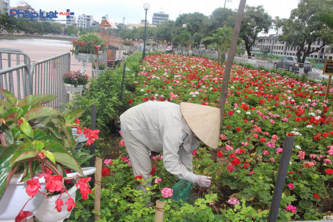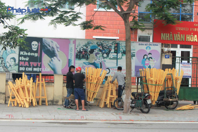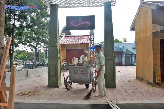 Trước giờ khai trương tuyến phố đi bộ thứ hai của Hà Nội, các hạng trên phố Trịnh Công Sơn đang được gấp rút hoàn thành.