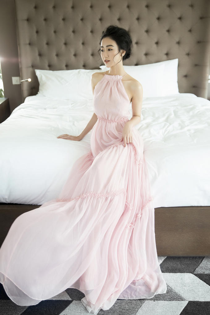 Trong bộ ảnh mới nhất, Hà Thu lựa chọn phong cách thanh lịch nữ tính, với những chiếc váy nhẹ nhàng, màu dịu mắt như trắng, hồng nhạt, màu kem...Những bộ váy được may giản đơn nhưng khéo léo giúp khoe bờ vai của người phụ nữ, qua đó khi diện vào Hà Thu trở nên đằm thắm và ngọt ngào hơn.
