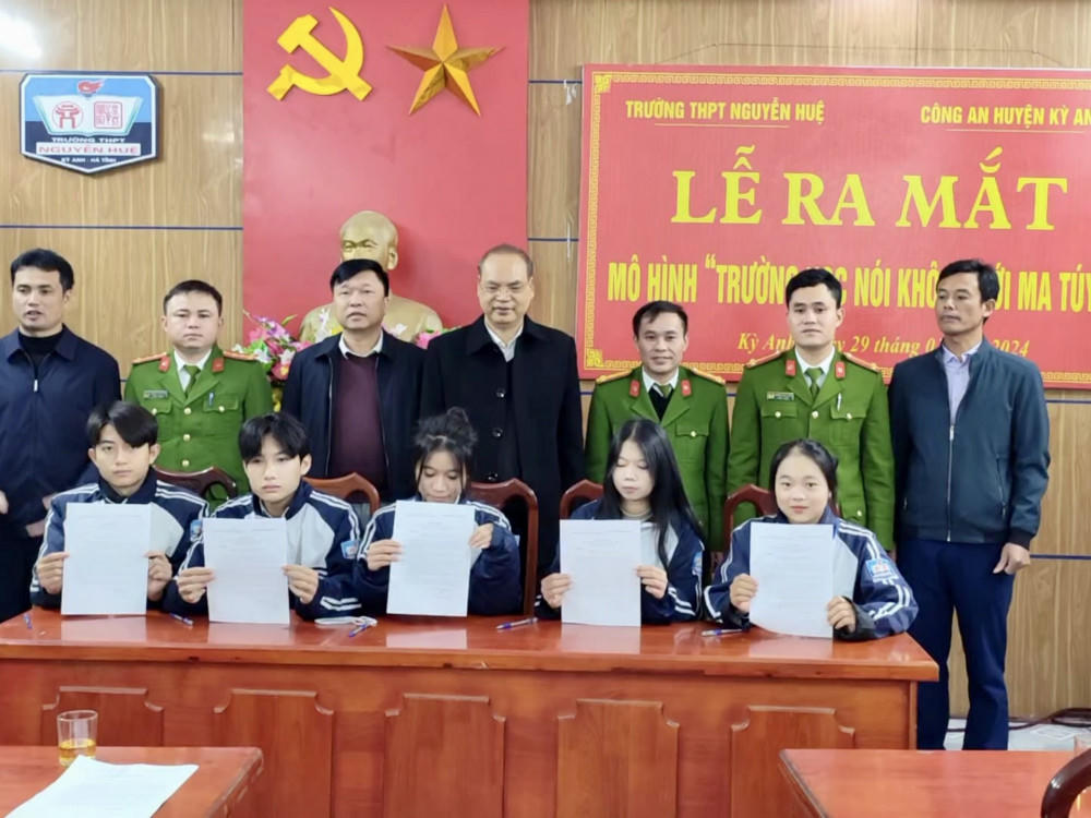 Ngày 29/0, Công an huyện Kỳ Anh (Hà Tĩnh) đã phối hợp với trường THPT Nguyễn Huệ (xã Kỳ Phong - huyện Kỳ Anh) tổ chức lễ ra mắt mô hình "Trường học nói không với ma tuý".