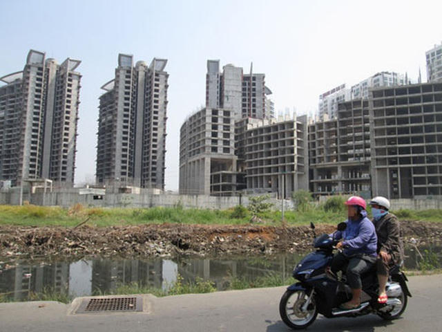 Một dự án bất động sản ở huyện Nhà Bè được ngân hàng rao bán. Ảnh: Ngọc Ánh