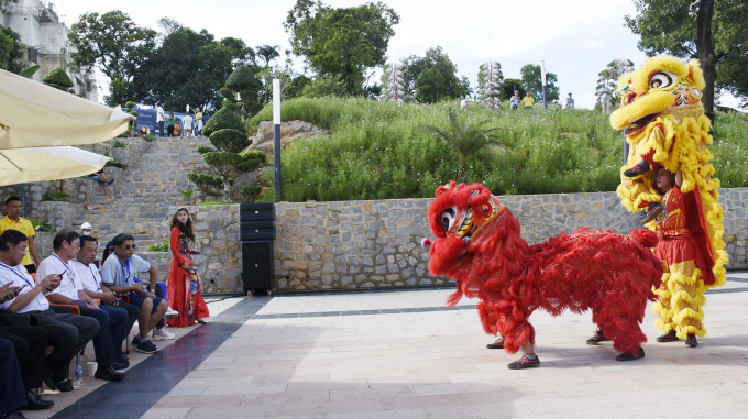 Đoàn khảo sát xem múa lân tại Khu du lịch. (Ảnh: Báo BRVT)