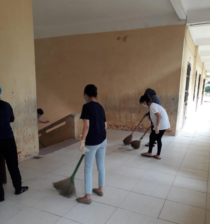 Các giáo viên của Trường THCS tự tay quét dọn, vệ sinh trường lớp trước ngày đón học sinh trở lại trường.
