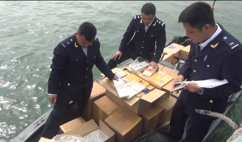 Cán bộ hải quan phát hiện thu giữ lô hàng thuốc lá nhập lậu trên biển Quảng Ninh.( Ảnh: Thời báo Tài chính)