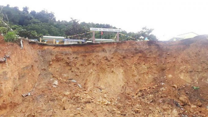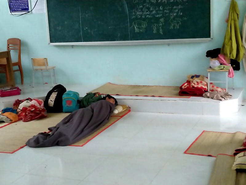 Trường Phổ thông dân tộc bán trú tiểu học và THCS Phước Lộc vẫn còn 60 em ở trường do nhà bị sạt lở, không có chỗ ở. Ảnh Dân trí.