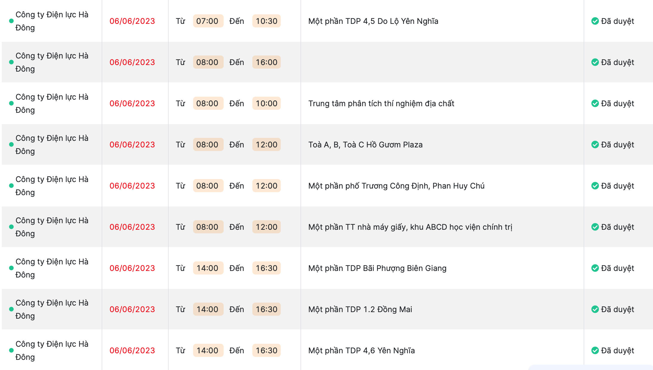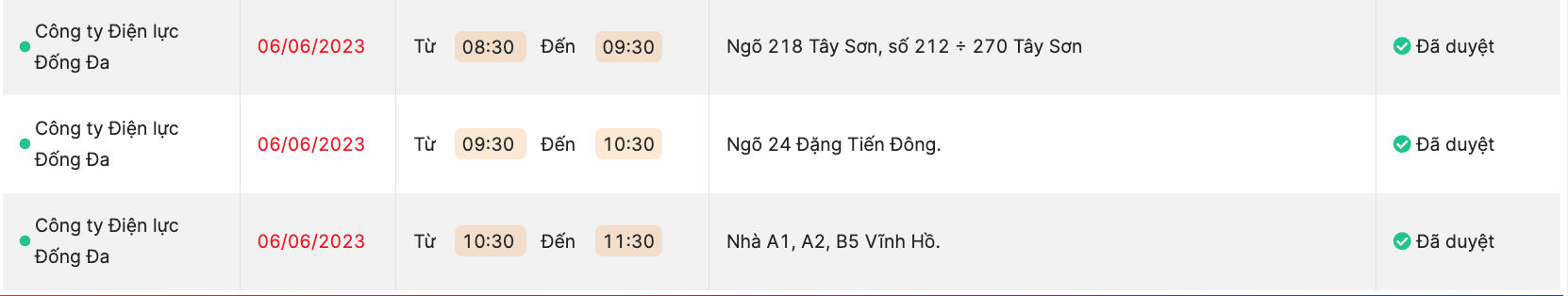 Theo EVNHANOI, ngày 6/6, trên địa bàn Thủ đô một số quận huyện tiếp tục bị cắt điện.