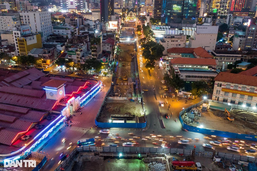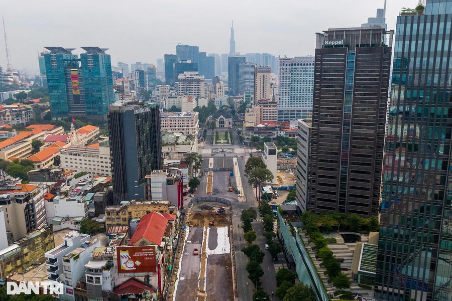 Công trường metro trên đường Lê Lợi (quận 1, TPHCM) đang khẩn trương thi công tháo dỡ toàn bộ rào chắn, hoàn trả mặt bằng và tái lập cảnh quan cho khu vực này.