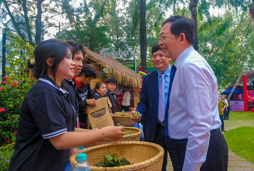 | Lãnh đạo tỉnh Bình Định thăm các gian hàng tại Ngày hội. Ảnh: Báo dân tộc |