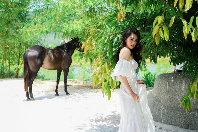 Mới đây, trong một chuyến công tác lên M’drak, Hoa hậu Tiểu Vy đã thực hiện bộ ảnh làm kỷ niệm bởi khung cảnh ở đây quá nên thơ, hữu tình với mây xanh, cát trắng, nắng vàng, căn nhà gỗ, những chú ngựa xinh, hàng cây tỏa bóng và hồ nước mát lành…