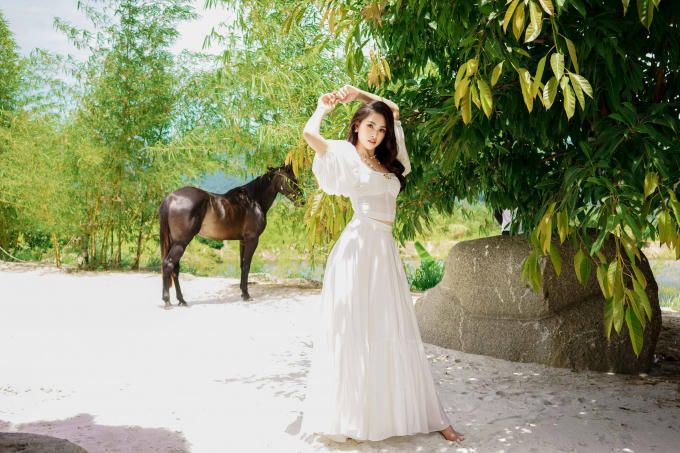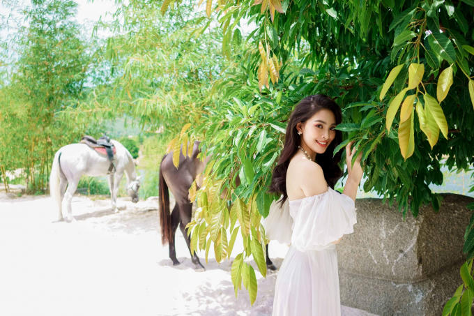 Mới đây, trong một chuyến công tác lên M’drak, Hoa hậu Tiểu Vy đã thực hiện bộ ảnh làm kỷ niệm bởi khung cảnh ở đây quá nên thơ, hữu tình với mây xanh, cát trắng, nắng vàng, căn nhà gỗ, những chú ngựa xinh, hàng cây tỏa bóng và hồ nước mát lành…
