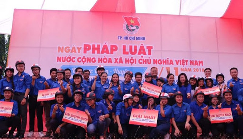 Các bạn trẻ TP Hồ Chí Minh hưởng ứng Ngày Pháp luật.