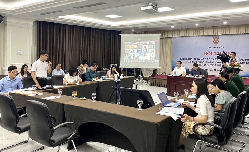 Toàn cảnh một cuộc hội thảo trực tuyến về công tác phổ biến, giáo dục pháp luật.