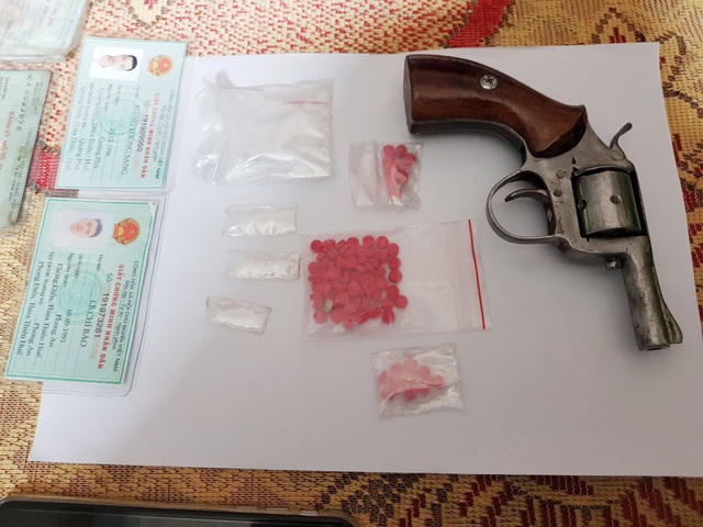 Đối tượng và các tang vật bị bắt gồm nhiều ma túy và súng rulo