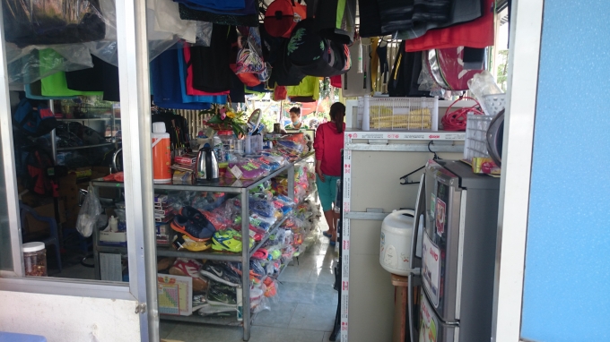 | Quầy bán các đồ dùng thể thao của chị N. |