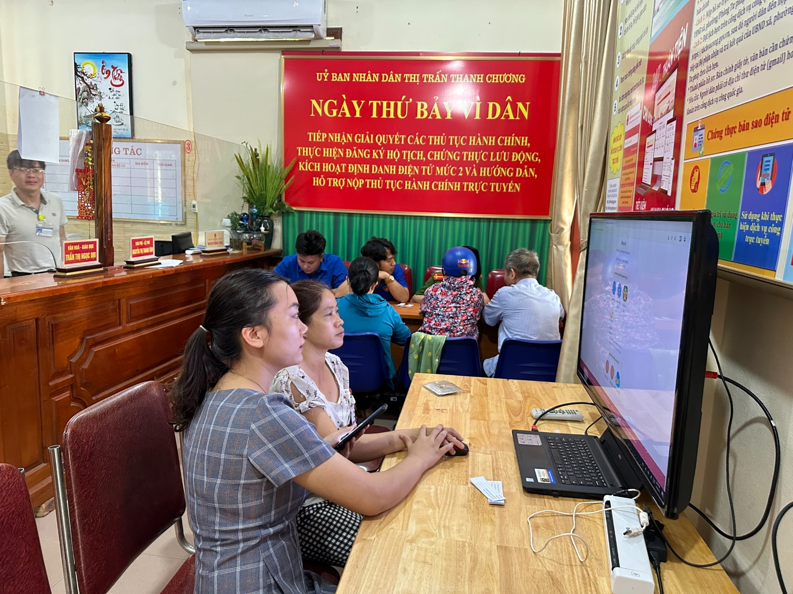 Tại thị trấn Thanh Chương, ông Tưởng Đăng Hào - Chủ tịch UBND thị trấn cho biết: “Ngoài những ngày làm việc trong tuần, UBND thị trấn phân công các cán bộ, công chức phụ trách các lĩnh vực như: Đất đai, xây dựng, nông nghiệp, môi trường, hộ tịch, chứng thực, lao động, thương binh & xã hội…trực làm việc cả ngày thứ Bảy tuần đầu tiên và thứ Bảy tuần cuối cùng của tháng để tiếp nhận, giải quyết các thủ tục hành chính cho người dân và doanh nghiệp. Đồng thời sẽ thực hiện hỗ trợ thực hiện đăng ký hộ tịch, chứng thực lưu động cho các công dân là những người lớn tuổi, bệnh tật, ốm đau, người gặp khó khăn trong quá trình đi lại đang sinh sống trên địa bàn. Ngoài ra, tiến hành kích hoạt định danh điện tử và hỗ trợ hướng dẫn người dân doanh nghiệp nộp hồ sơ trên hệ thống dịch vụ công trực tuyến”.