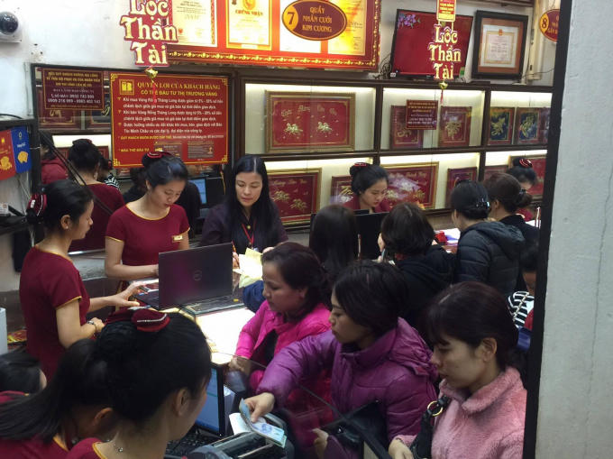 Theo chủ cửa hàng, trong ngày hôm nay mặc dù lượng khách tới giao dịch đông gấp cả chục lần ngày thường, song, khách tới mua vàng cầu may là chủ yếu. Theo đó, cứ khoảng 10 khách thì chỉ có 2 khách tới bán vàng, còn lại đều là khách tới mua các loại vàng lẻ, vàng miếng, vàng phong thủy.