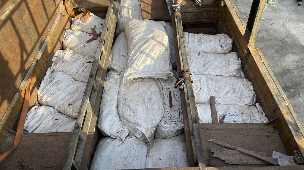 Gần 2,5 tấn vảy động vật (nghi vảy Tê tê) bị thu giữ.