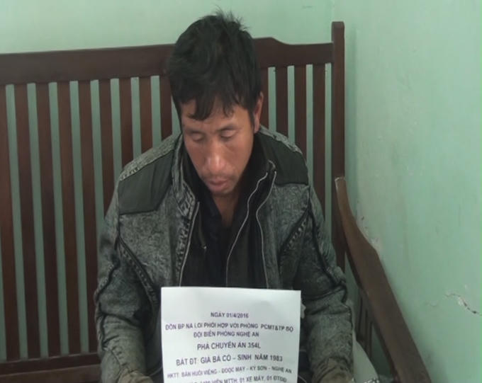 Đối tượng bị bắt là Già Bá Cò, sinh năm 1983, hộ khẩu thường trú tại bản Huồi Viêng, xã Đọoc Mạy, huyện Kỳ Sơn, Nghệ An, đang trên vận chuyển ma túy từ bên kia biên giới về Việt Nam tiêu thụ, đến địa điểm trên thì bị bắt giữ. Tang vật thu giữ tại hiện trường là 3.400 viên ma túy tổng hợp, 1 xe máy, 1 điện thoại di động.