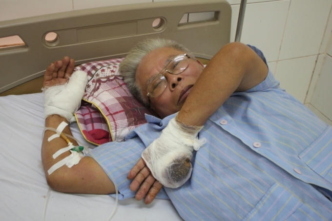 Đang điều trị tại Bệnh viện chấn thương chỉnh hình tỉnh Nghệ An, ông Nguyễn Quang Lộc vẫn chưa hết bàng hoàng sau sự việc mình bất ngờ bị hai đối tượng lạ mặt dùng dao chém đứt lìa một ngón tay của mình.
