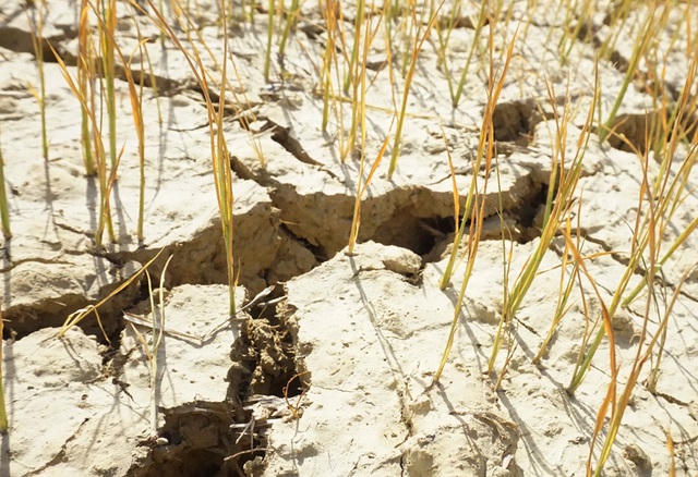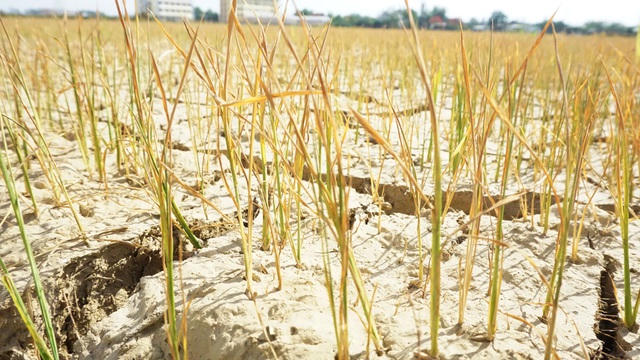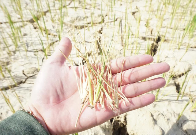 Những cánh đồng lúa từ khi gieo hạt đến nay chưa được tưới nước khiến đồng ruộng nứt nẻ, cây lúa chết khô.