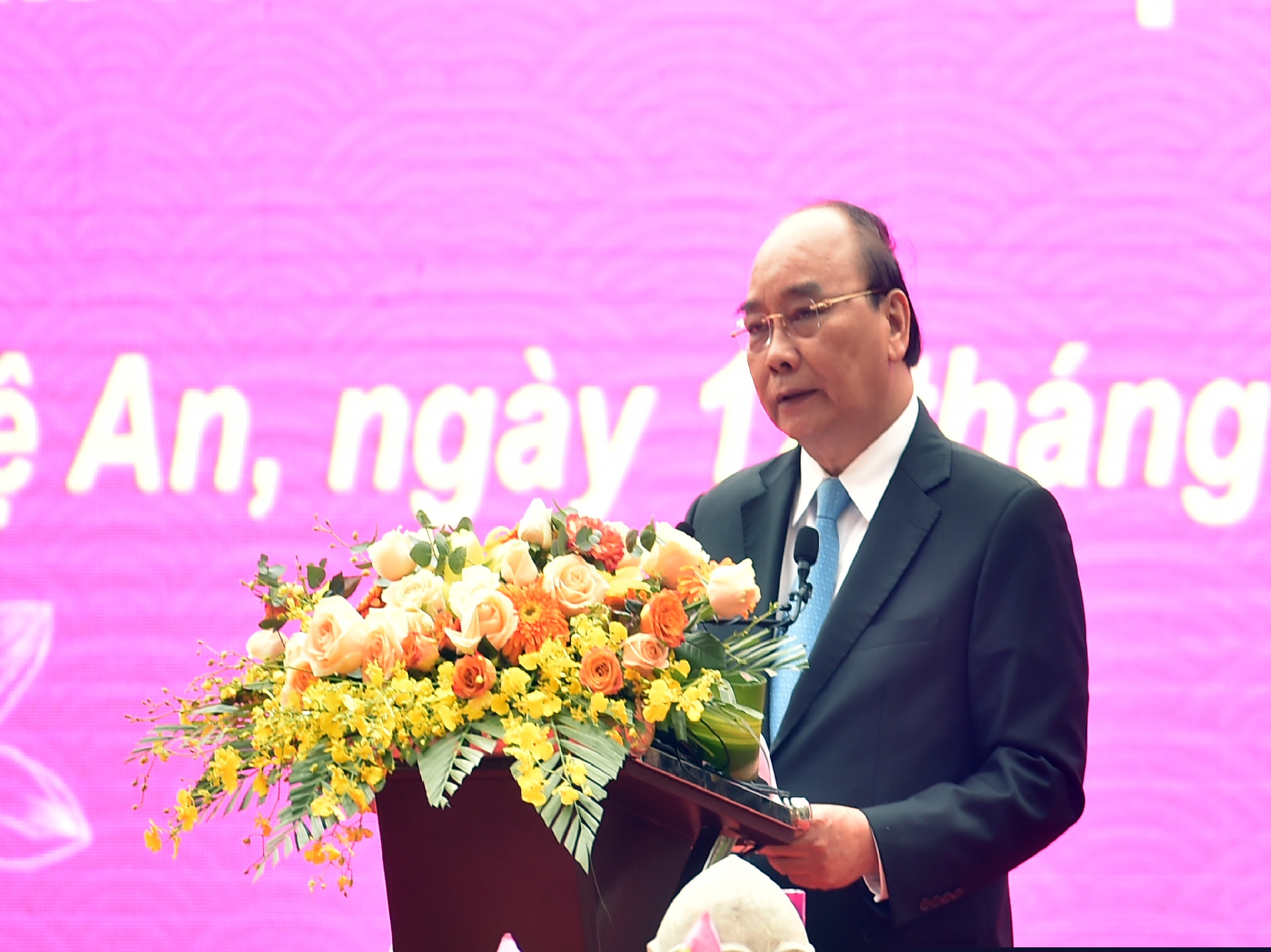 Phát biểu tại buổi lễ, Chủ tịch nước Nguyễn Xuân Phúc nhấn mạnh đến vùng đất giàu truyền thống lịch sử, văn hóa, yêu nước và cách mạng Nghệ An, cũng là vùng đất địa linh, nhân kiệt, sinh ra nhiều nhân vật lịch sử nổi tiếng của dân tộc, là nơi chôn nhau, cắt rốn của Chủ tịch Hồ Chí Minh.