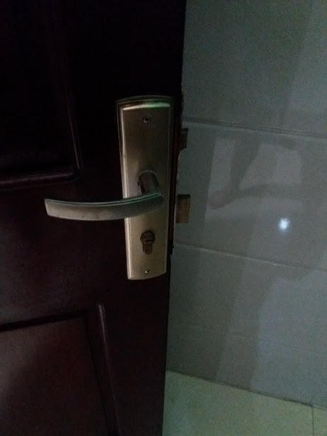 Cửa chính nhà anh Lập bị giật tung.