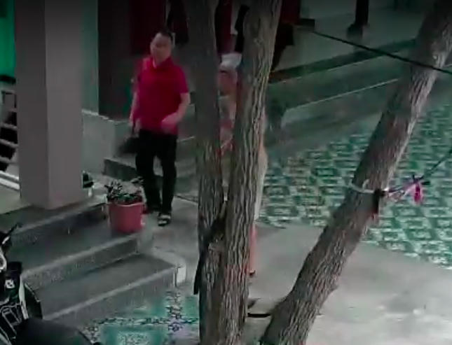 Thấy vậy, ông liền đi ra ngoài, và gặp một nam thanh niên cao khoảng 1m70, mặc áo phông màu đỏ, quần bò và nói rằng, “nhà cháu là công an, đang đi bắt tội phạm truy nã”.