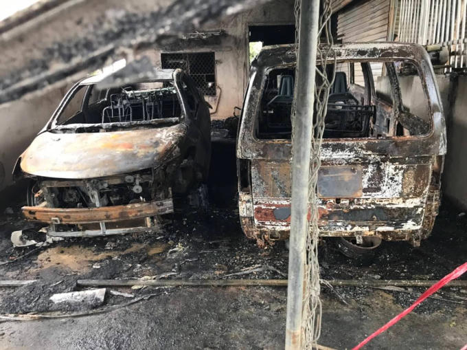 Hai ô tô bị thiêu rụi hoàn toàn.