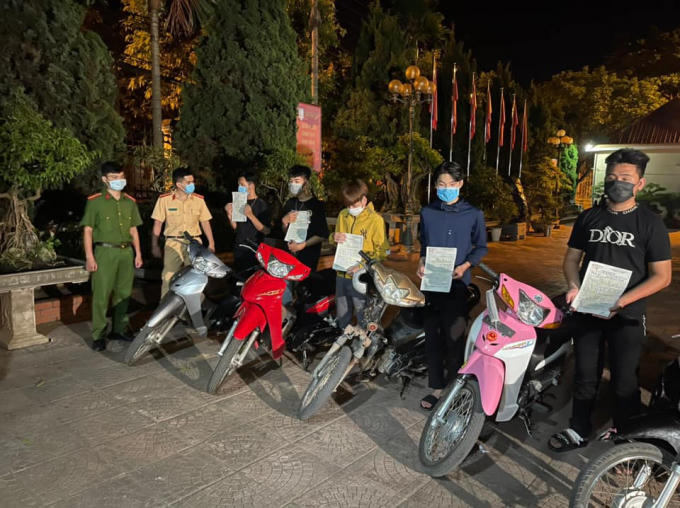 Theo đó, vào khoảng 19h’ ngày 12/5, Công an thị xã Thái Hòa, Nghệ An phát hiện một nhóm khoảng 20 đối tượng tụ tập, không đeo khẩu trang, dàn xe hàng ngang, chuẩn bị điều khiển xe lạng lách, đánh võng, đua xe trái phép trên địa bàn.