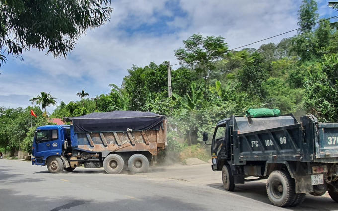 Hàng loạt xe tải khủng lấy đất từ mỏ Rú Thành...