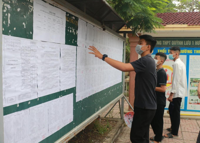 Các thí sinh kiểm tra lại thông tin trước khi vào phòng thi. (Ảnh: ĐA)