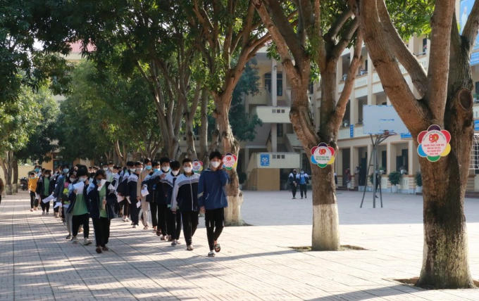 Việc tiêm vắc xin được tổ chức tất cả các trường học. Để đảm bảo quy định giãn cách, học sinh sẽ được tiêm riêng theo từng khối lớp. Trước khi vào tiêm học sinh mang theo tờ khai về sức khỏe.