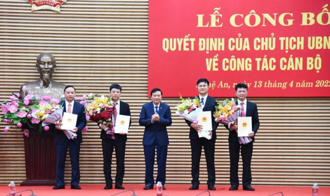 Chiều 13/4, UBND tỉnh Nghệ An tổ chức lễ trao quyết định công bố bổ nhiệm Phó Giám đốc các sở, Phó Ban Quản lý Khu kinh tế Đông Nam Nghệ An.