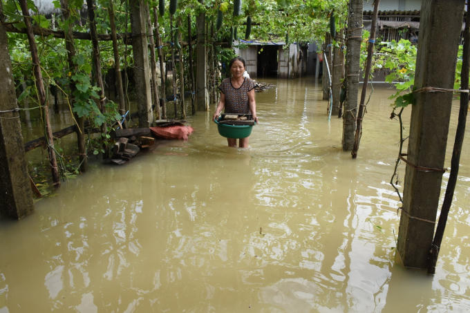Có những vị trí nước ngập sâu, người dân phải di chuyển đồ đạc.