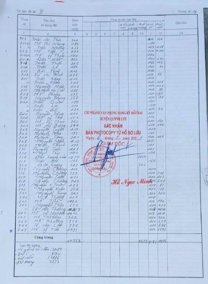 Hồ sơ lưu trữ cho thấy thửa đất 749 mà UBND Quỳnh Long cho rằng của ông Hồ Sỹ Luyên thuộc quyền sở hữu của ông Hồ Sỹ Tiêu.