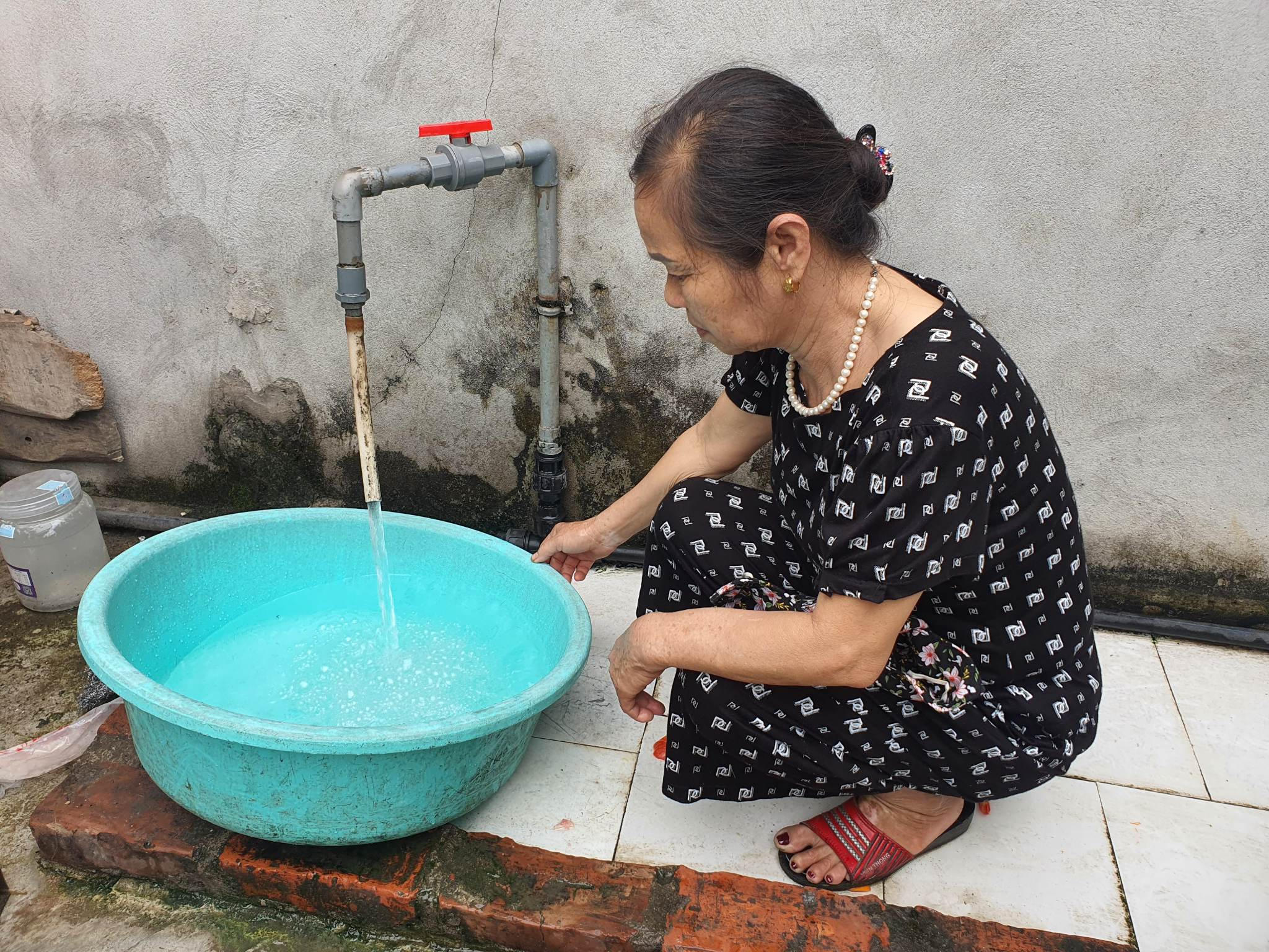 Đến 9h30, ngày 14/4, phóng viên Báo Pháp luật Việt Nam đã có mặt tại nhà của hộ gia đình bà Trần Thị H. để ghi nhận thực trạng. Bà H., cho biết: Sau một thời gian xả, đến thời điểm này nước đã trong trở lại, tuy nhiên dưới đáy vẫn còn xuất hiện 1 ít cặn.