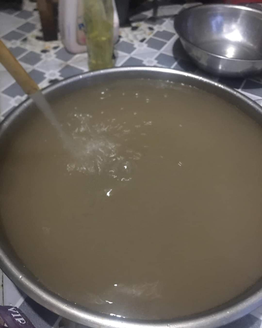 Theo bà Nguyễn Thị Hoàng O., trú xóm Khoa Đà: Lúc 4h40 ngày 14/4, bà có mở nước sử dụng thì có tình trạng nước có màu bùn đục, hôi tanh. Sau khi hỏi các hộ gia đình lân cận thì đều có tình trạng như vậy.