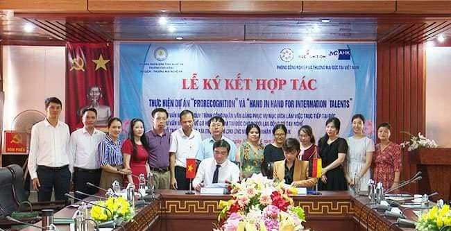 Chiều 30/6, tại thị xã Cửa Lò, Lễ ký kết hợp tác giữa Trường cao đẳng Du lịch - Thương mại Nghệ An với Phòng Công nghiệp và Thương mại Đức (AHK) tại Việt Nam về thực hiện dự án “RroReccognition” (Tư vấn công nhận văn bằng tại Đức) và “Hand in Hand fo International Talents”(Tư vấn cơ hội việc làm tại Đức) đã được long trọng tổ chức.