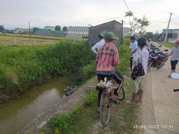 Trước đó, và lúc 17h ngày 26/5, người dân khi đi trên đường gần trạm bơm số 2, giáp xóm thuận Đông và Thuận Minh, xã Thuận Sơn (Đô Lương - Nghệ An) phát hiện xe máy mang biển số BKS: 37-F7.4265 nằm dưới mương thủy lợi.