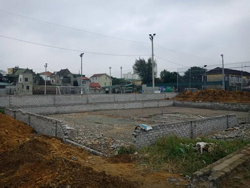 Theo nguồn tin mà chúng tôi thu thập được thì sau khi tiếp nhận khu đất vàng gần 5.000 m2 (đã trừ đất xây dựng trường học và nhà văn hóa), UBND phường Lê Lợi mà đứng đầu là ông Thái Giáp Vinh – chủ tịch phường đã giao cho ông Nguyễn Đình Sơn – nhân viên Đội quy tắc đô thị của phường này tiến hành xây dựng một nhà điều hành, hai sân bóng nhân tạo, một sân bóng chuyền rộng hàng ngàn m2.