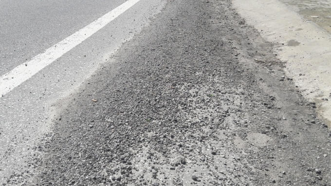 Ở những vị trí này các vết “lở loét” ngày một nghiêm trọng hơn, khiến tuyến đường trở nên thê thảm. Bên cạnh đó một số đoạn đã được cào bóc những “quên” thảm lại mặt đường xuất hiện tình trạng xói sâu xuống đến 10 – 12 cm, những vị trí này trở thành “cái bẫy” đối với người tham gia giao thông đặc biệt là người điều khiển xe máy.