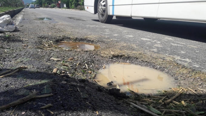 "Tấm áo mới” này chỉ qua một thời gian ngắn đã bị rách tươn. Mặt đường mới được thảm lại đã xuất hiện chằng chịt ổ voi, ổ gà gây nguy hiểm cho người tham gia giao thông.