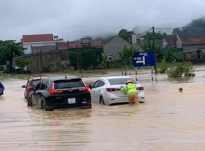 Theo báo cáo nhanh của Sở Giao thông vận tải Nghệ An tính đến trưa ngày 25/9, trên tuyến quốc lộ 48E có 7 vị trí bị ngập, đặc biệt tại vị trí tràn Đá Hàn, xã Quỳnh Thắng, huyện Quỳnh Lưu bị ngập đến 1,6m.
