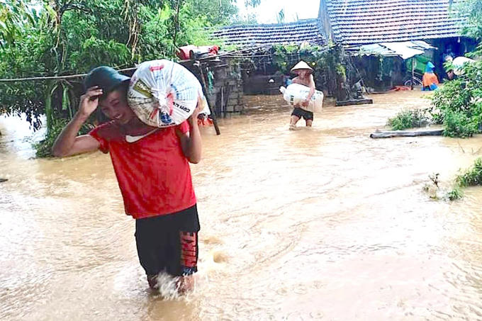 Nước ngập sâu tại xã Quỳnh Tam, huyện Quỳnh Lưu, Nghệ An.