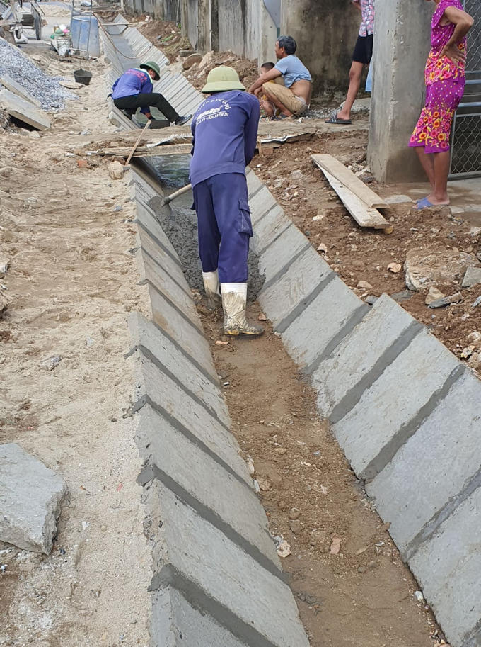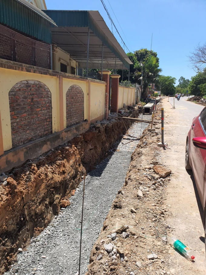 Quá trình thi công tại đây cũng bộc lộ nhiều bất cập. Với hệ thống mương được đào để ghép tấm bản thành mương có chiều sâu từ 40-50cm với chiều rộng tương tự. Cùng với đó, phần lề đường cũng bị hạ thấp hơn so với mặt nền đường lên tới 30-35cm với bề rộng tầm 50cm tạo nên một khoảng trống, sâu dọc suốt đoạn đường đang thi công.