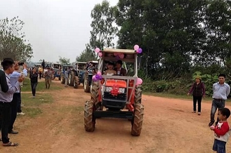 Màn rước dâu bằng 8 chiếc máy cày của chú rể Bá Lương và cô dâu Thảo Vân được tổ chức vào chiều 22/12 tại xã Nghĩa Lộc (Nghĩa Đàn, Nghệ An).