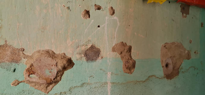 Tường bong tróc, dù đã nhiều lần được vá.