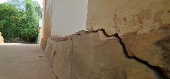 Cụ thể: Có 7 phòng học cấp 4 do xây dựng bằng sò tự nhiên và vôi nên bị lở rất nhiều, phần mái ngói, hệ thống đỡ ngói (xà gồ, cầu phong, li tô) đã bị mối, mọt ăn làm mục nát có thể rơi, sập bất cứ lúc nào đe dọa đến tính mạng của giáo viên và học sinh trong lúc dạy và học.