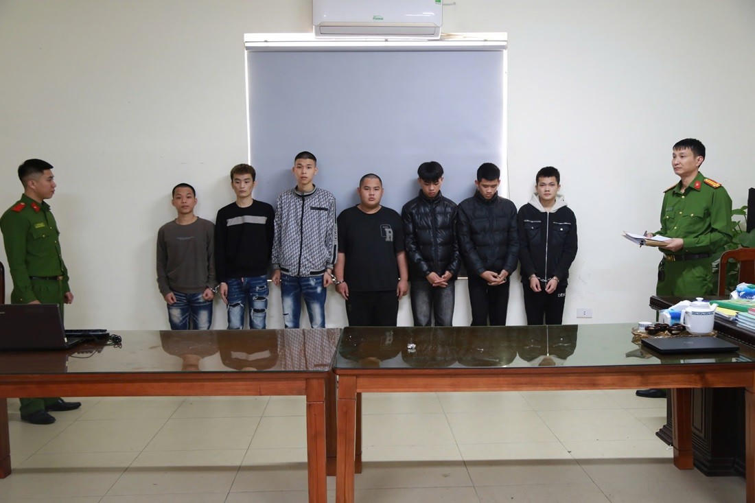 Các đối tượng bị khởi tố về tội Gây rối trật tự công cộng quy định tại khoản 2, Điều 318 Bộ Luật hình sự trú tại huyện Nghi Lộc, huyện Quỳ Hợp và thành phố Vinh (Nghệ An) gồm: Vương Bảo Nhật (sinh năm 2008), Hồ Quốc Dương (sinh năm 2005), Võ Mạnh Hùng (sinh năm 2007), Lại Hoàng Gia Long (sinh năm 2008), cùng trú huyện Nghi Lộc; Bùi Xuân Hải (sinh năm 2008), Nguyễn Ngọc Vang (sinh năm 2004) cùng trú thành phố Vinh và Nguyễn Đăng Phương (sinh năm 2006), trú huyện Quỳ Hợp.
