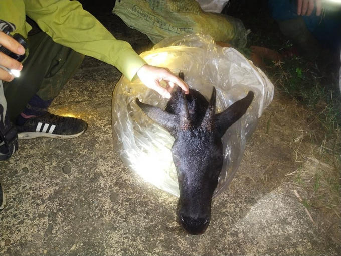 Qua khám xét, phát hiện 2 đối tượng đang vác 1 bao đựng xác động vật hoang dã. Đó là một con sơn dương đã bị giết hại và phân ra nhiều bộ phận. Đội tuần tra lập biên bản tịch thu tang vật và đưa 2 đối tượng về xử lý.