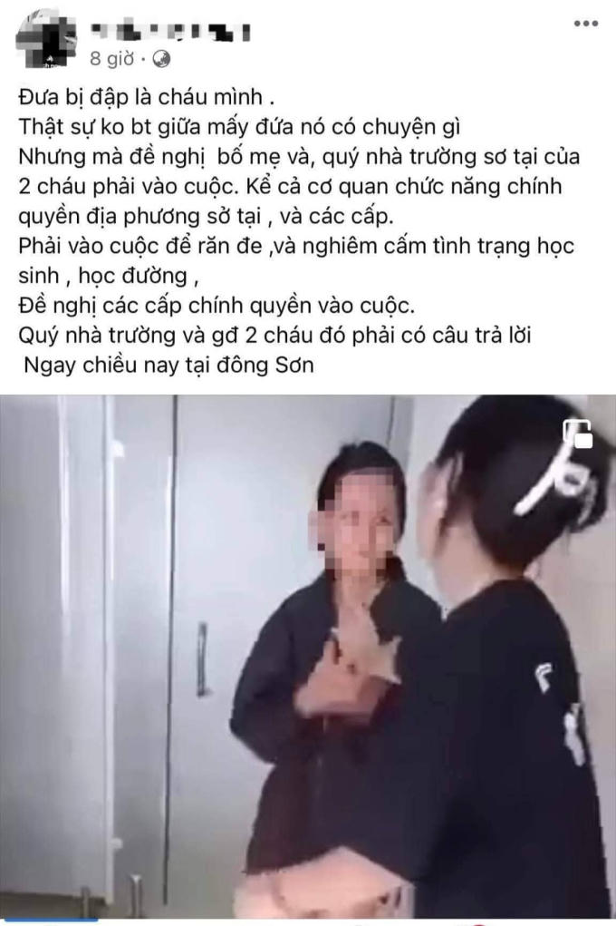 Trước đó, trên mạng xã hội lan truyền 1 số đoạn video ghi lại cảnh một nữ sinh bị đánh trong nhà vệ sinh bởi một số bạn nữ khác. Hành vi của các bạn nữ khiến cộng đồng mạng hết sức bức xúc, phẫn nộ.